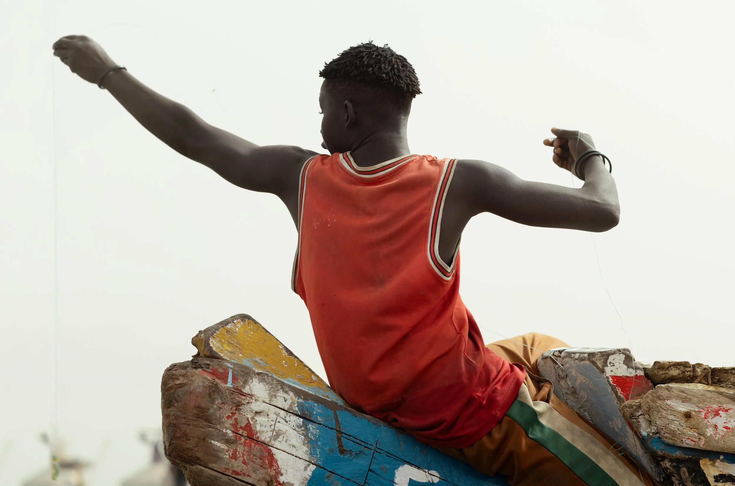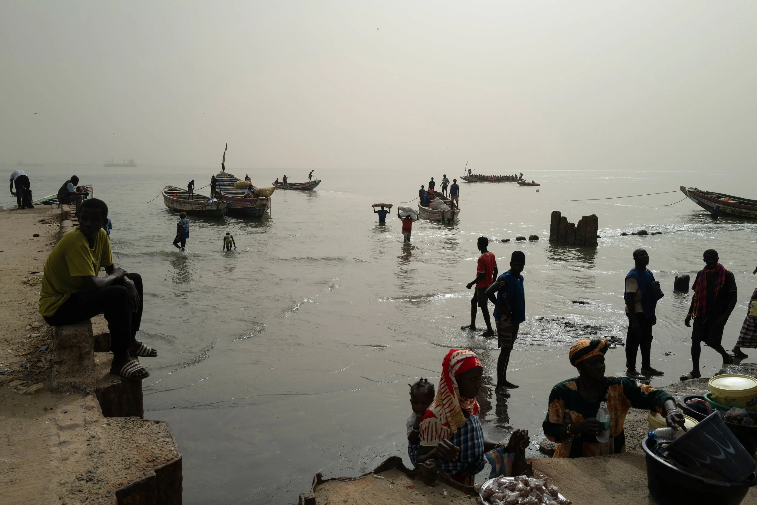 Lungo le sponde del fiume Senegal c'è chi cerca un posto a bordo di una piroga per attraversare il fiume e chi lo ha già trovato. Chi si rincorre sulla sabbia. Chi pazientemente rammenda le reti. Chi è al largo e chi sta già tornando con le reti piene. Mentre i pellicani accompagnano i pescatori, c’è chi saluta, chi aiuta a scaricare, chi solamente attende un ritorno, chi si conosce e chi si è appena incontrato.